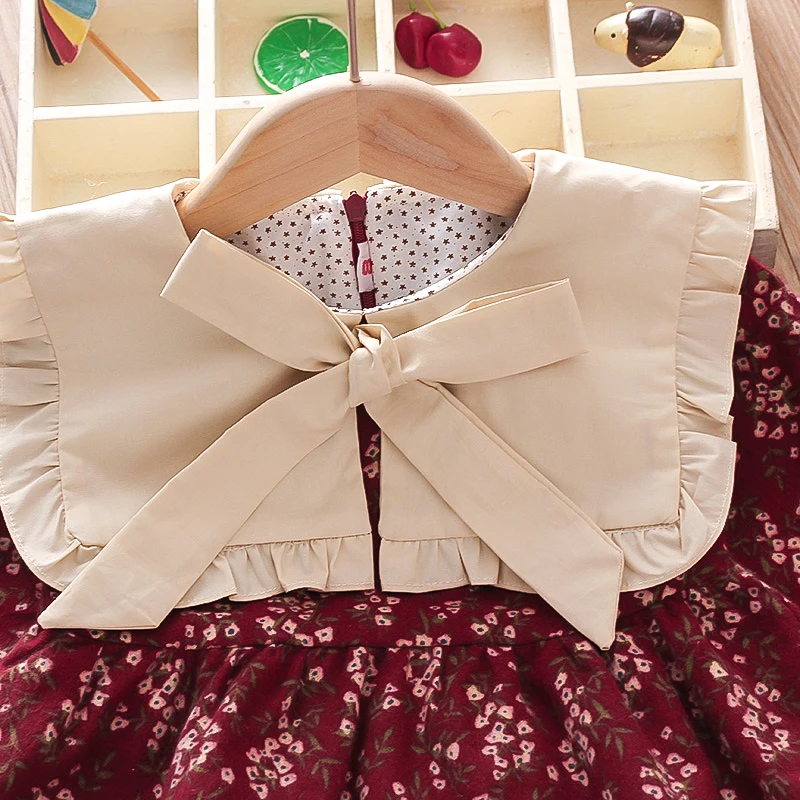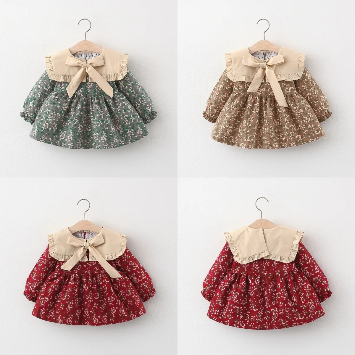 Baby Girl Clothes Spring And Autumn Long-Sleeved Bow Full Print Floral Doll Collar Children Dresses Cute Casual Baby Girl Dress