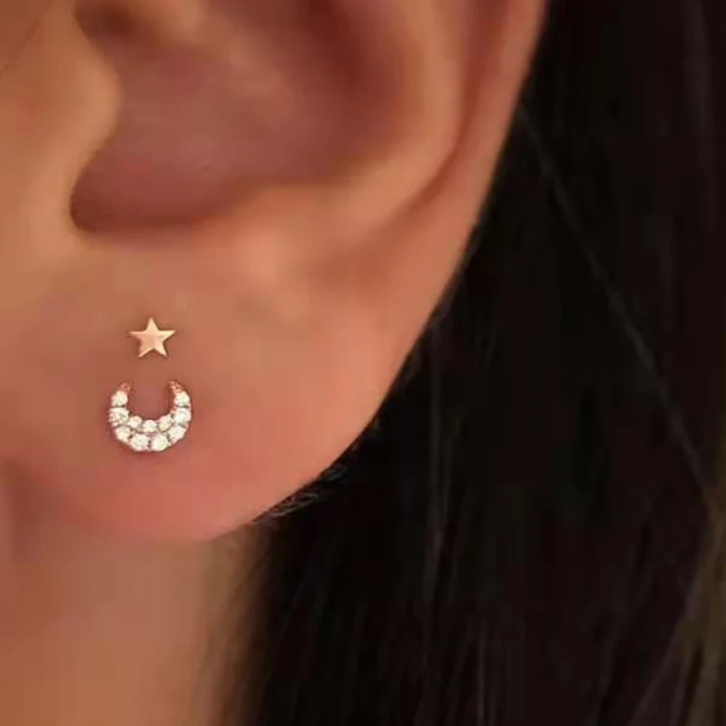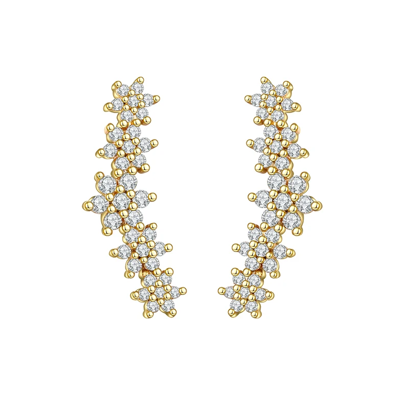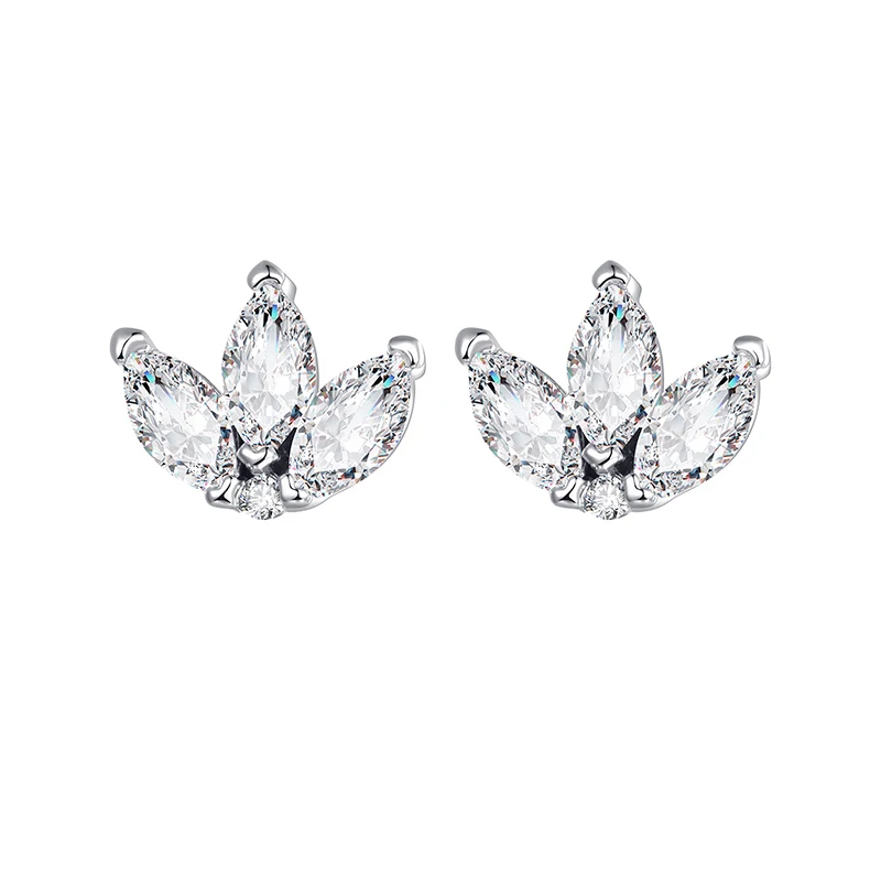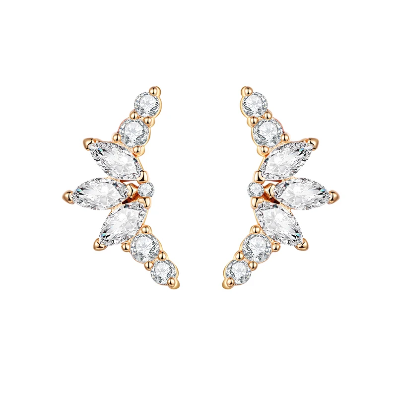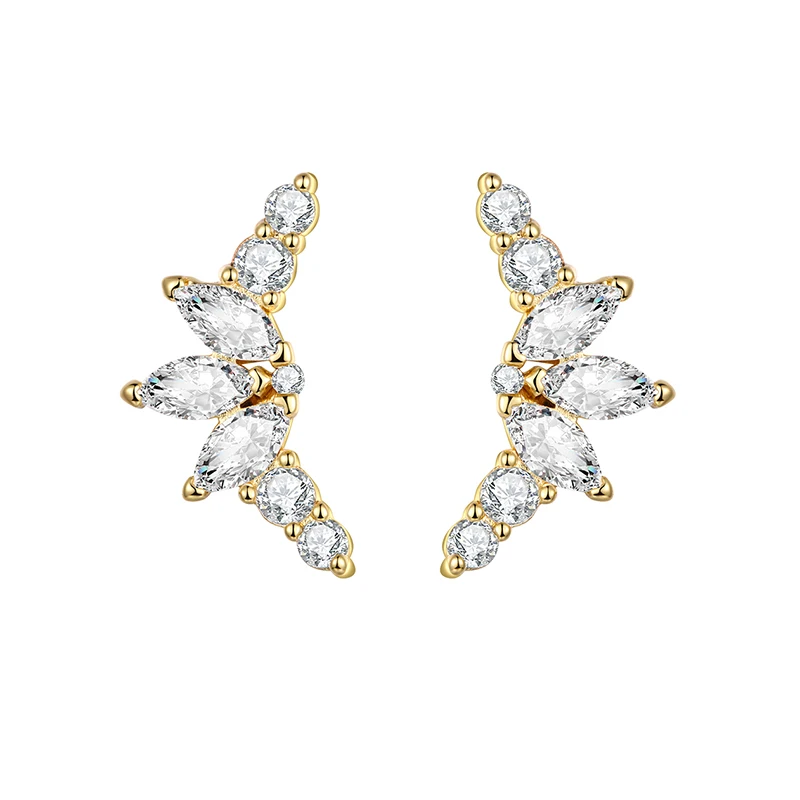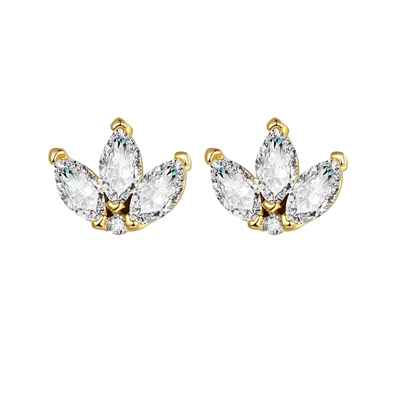 Korean Fashion Cubic Zirconia Yellow Silver Plated Stud Earring For Women Engagement Wedding Trendy Jewelry Gift Girls