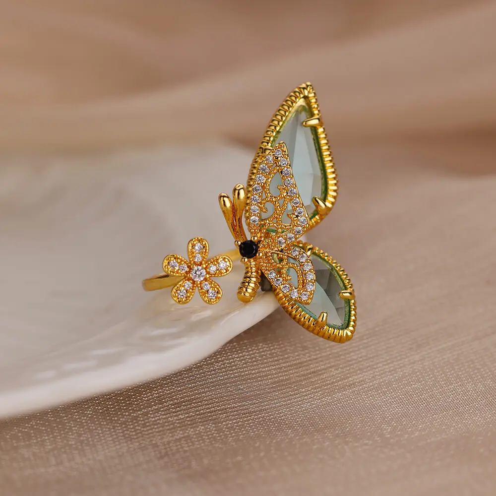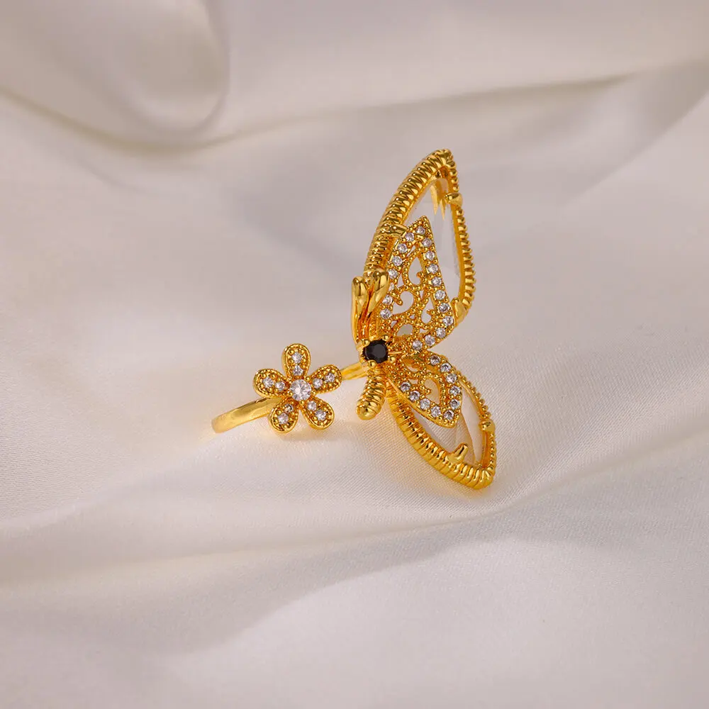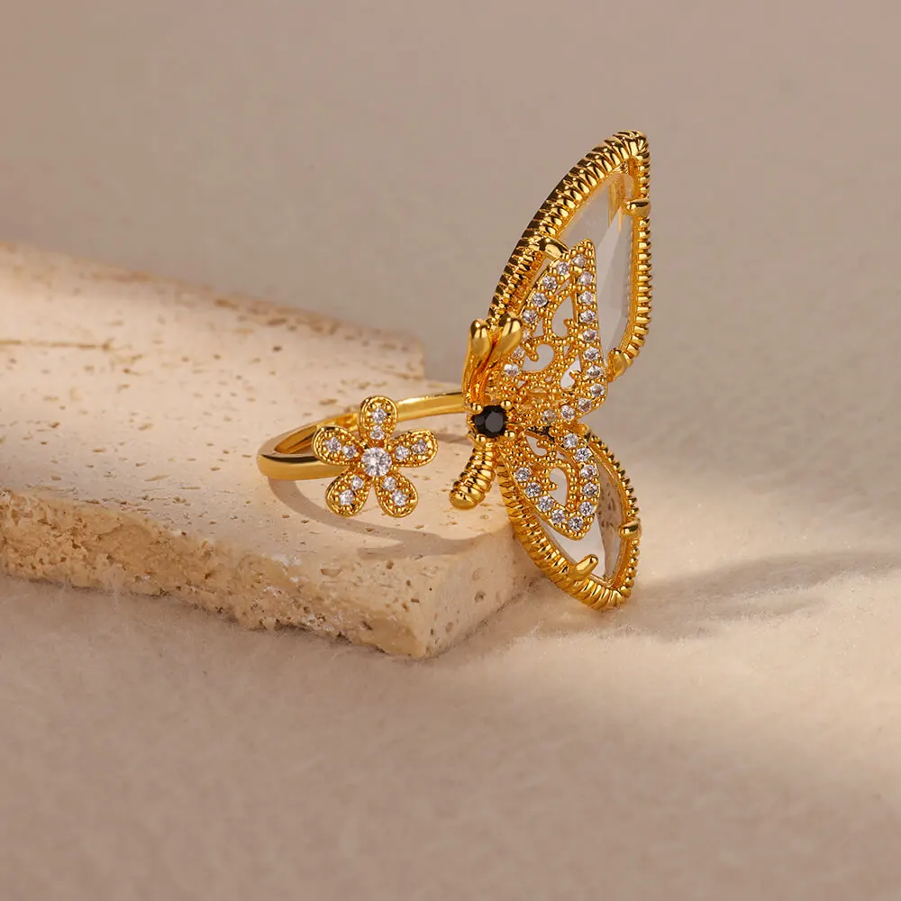 Ziron Butterfly Rings for Women Bling Elegant Stainless Steel Ring 2024 Trend New in Design Couple Jewelry y2k Accessories mujer